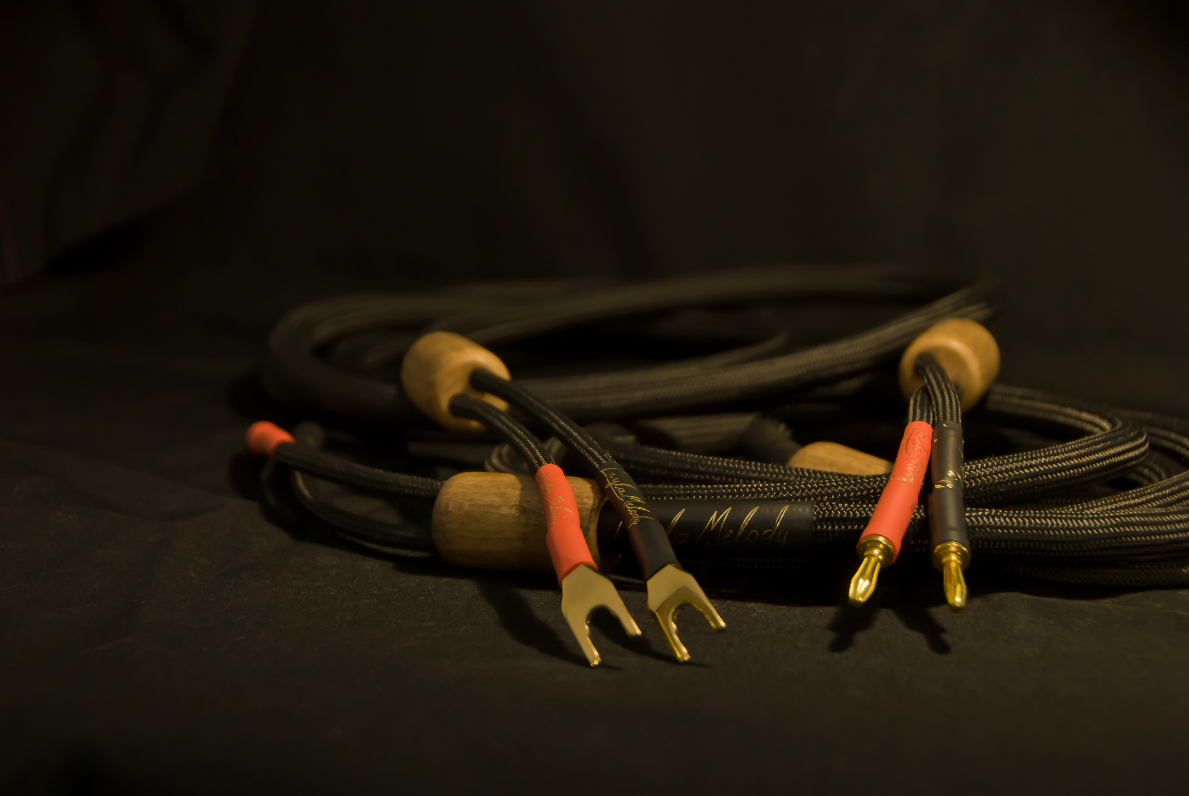 Kluczem do sukcesu było zastosowanie najwyższej czystości miedzi beztlenowej (O.F.C) 6N. W specjalnym ułożeniu koła z poszczególnymi żyłami wychodzącymi z jego okręgu. Przewodniki zbudowane są z 120 żył o przekroju 0,2mm dające przekrój 4mm². Dzięki skomplikowanemu procesowi produkcji osiągnęliśmy rezystancje 4,31Ω/Km wynoszącą niewiarygodne 0,00431Ω na metr! Dając efekt "pustego przewodu", tak bardzo pożądany w przypadku kabli głośnikowych. Izolacja wykonana jest jednym z najlepszych izolatorów kablowych - polichlorku winylu (PVC) w aż 3 różnych gęstościach. Skutecznie niwelując pojemność pomiędzy przewodnikami i izolując od zewnętrznych zakłóceń. Kabel zakończony pozłacanymi wtykami z beztlenowej miedzi o wysokiej czystości. Pokryty niezwykle wytrzymałym drobnym oplotem nylonowym do zastosowań wojskowych. Splitter'y wykonujemy własnoręcznie z woskowanego drewna bukowego. Nadają one kablu unikalny ekskluzywny wygląd podkreślający piękno każdej kolumny.